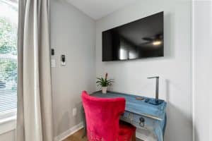 The Casita includes a well-equipped bedroom, a modern kitchen, and a cozy living area, making it perfect for both brief visits and longer stays. The bedroom ensures peaceful nights with its plush bedding and tranquil decor, while the kitchen is stocked with all the necessary amenities for meal preparation, from the latest appliances to a full set of cookware. The living area, furnished for comfort and entertainment, offers a relaxing spot to unwind after a day spent exploring Pensacola’s beaches, historic landmarks, and local dining spots.