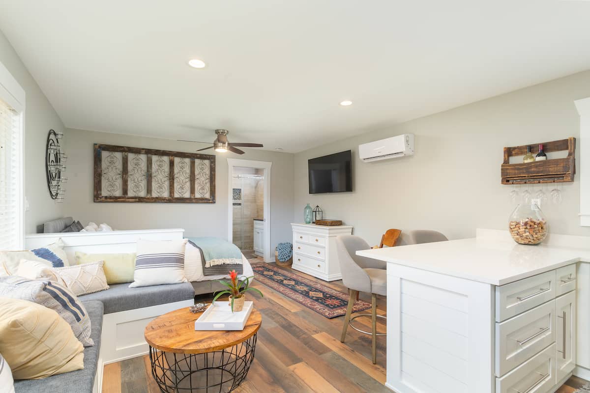 Nestled in the heart of the vibrant East Hill neighborhood of Pensacola, Florida, The Studio at East Hill Ivy offers a cozy and modern retreat for travelers seeking comfort and convenience. This charming studio apartment, perfect for solo adventurers or couples, combines stylish interior design with practical amenities to ensure a memorable stay. With its airy open-plan layout, the space is thoughtfully arranged to include a comfortable queen-sized bed, a well-equipped kitchenette for preparing light meals, and a snug living area to unwind after a day of exploration.
